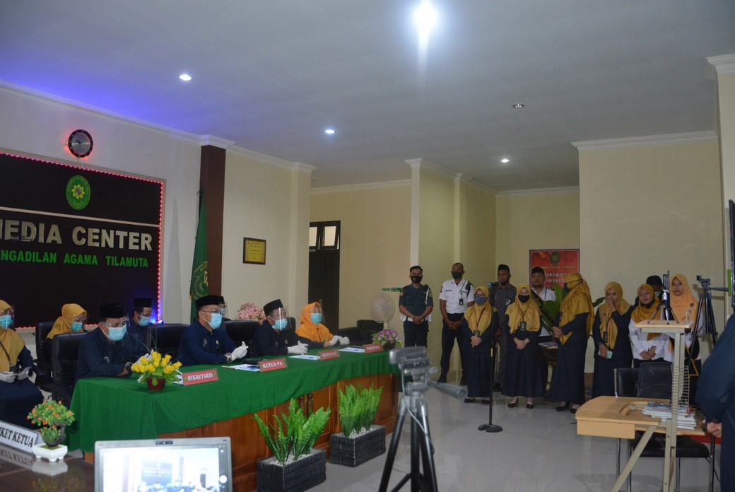 Sebagai salah satu lembaga yudikatif yang berada di wilayah Kabupaten Boalemo, Pengadilan Agama Tilamuta telah mengikuti pemaparan Pembangunan Zona Integritas di hadapan kementrian Pendayagunaan Aparatur Negara dan Reformasi Birokrasi sebagai tim Evaluator atau Tim Penilai Nasional yang berlangsung dari Media Center Pengadilan Agama Tilamuta pada sekitar pukul 10.Wita sampai dengan pukul 11.00 Wita yang telah turut pula didampingi oleh Tim Auditor dari Tim Penilai Internal dalam hal ini perwakilan Badan Pengawasan Mahkamah Agung.